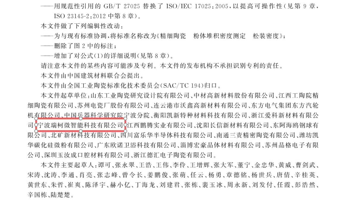 當(dāng) GB/T 45760-2025《精細(xì)陶瓷 粉體堆積密度測定 松裝密度》標(biāo)準(zhǔn)的發(fā)布公告出現(xiàn)在國家標(biāo)準(zhǔn)化管理委員會官網(wǎng)時,寧波瑞柯微智能科技有限公司的研發(fā)團(tuán)隊難掩激動 —— 這支深耕粉體檢測技術(shù)十余年的隊伍,終于將實(shí)驗(yàn)室里的技術(shù)沉淀,寫入了行業(yè)發(fā)展的 "教科書"。